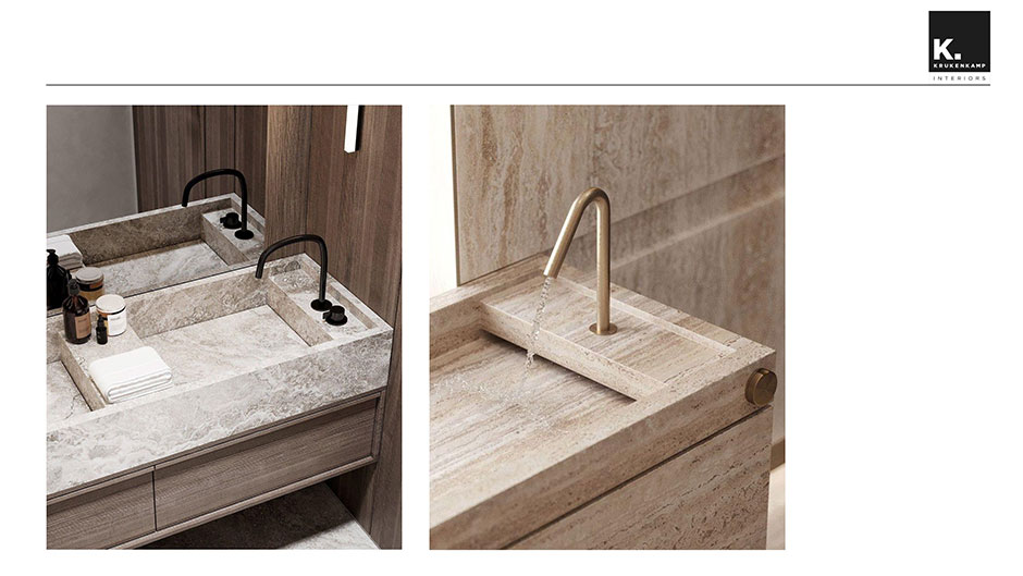 Vollbad en Suite mit Dusche, Rainshower, freistehender Badewanne, WC, Doppelwaschtisch, Handtuchtrockner und Fön. Alle Armaturen von Dornbracht.