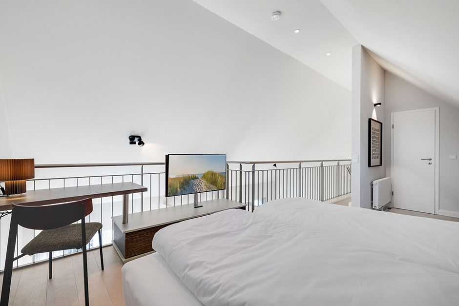 Schlafen Zwei Doppelschlafzimmer, davon eins auf der Galerie. Alle Betten sind für Sie bezogen! Die Wäsche-Erstausstattung mit Bettwäsche und Handtüchern ist bereits im Mietpreis enthalten.