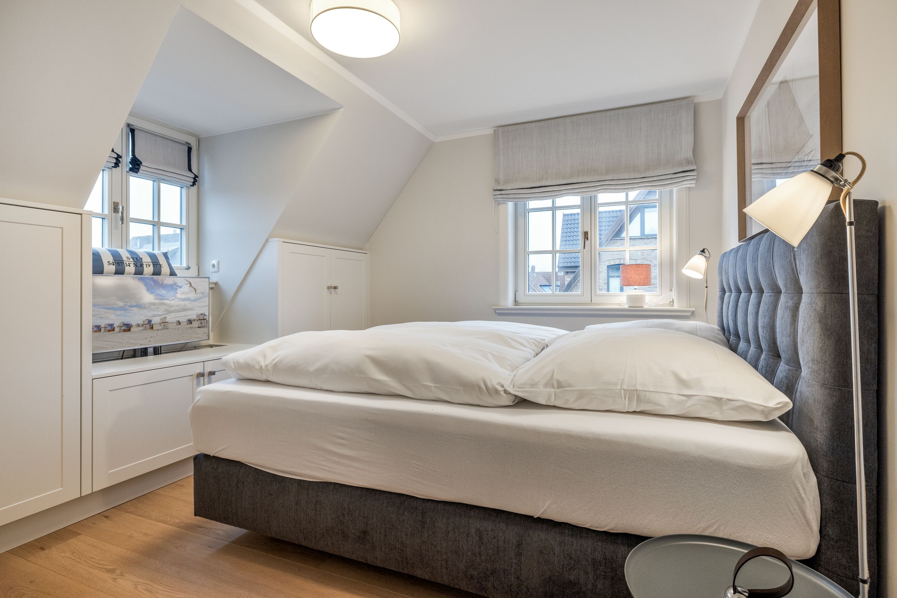 Schlafen Drei Doppelschlafzimmer mit Boxspringbetten und Einbauschränken. Alle Betten sind für Sie bezogen! Die Wäsche-Erstausstattung mit Bettwäsche und Handtüchern ist bereits im Mietpreis enthalten.