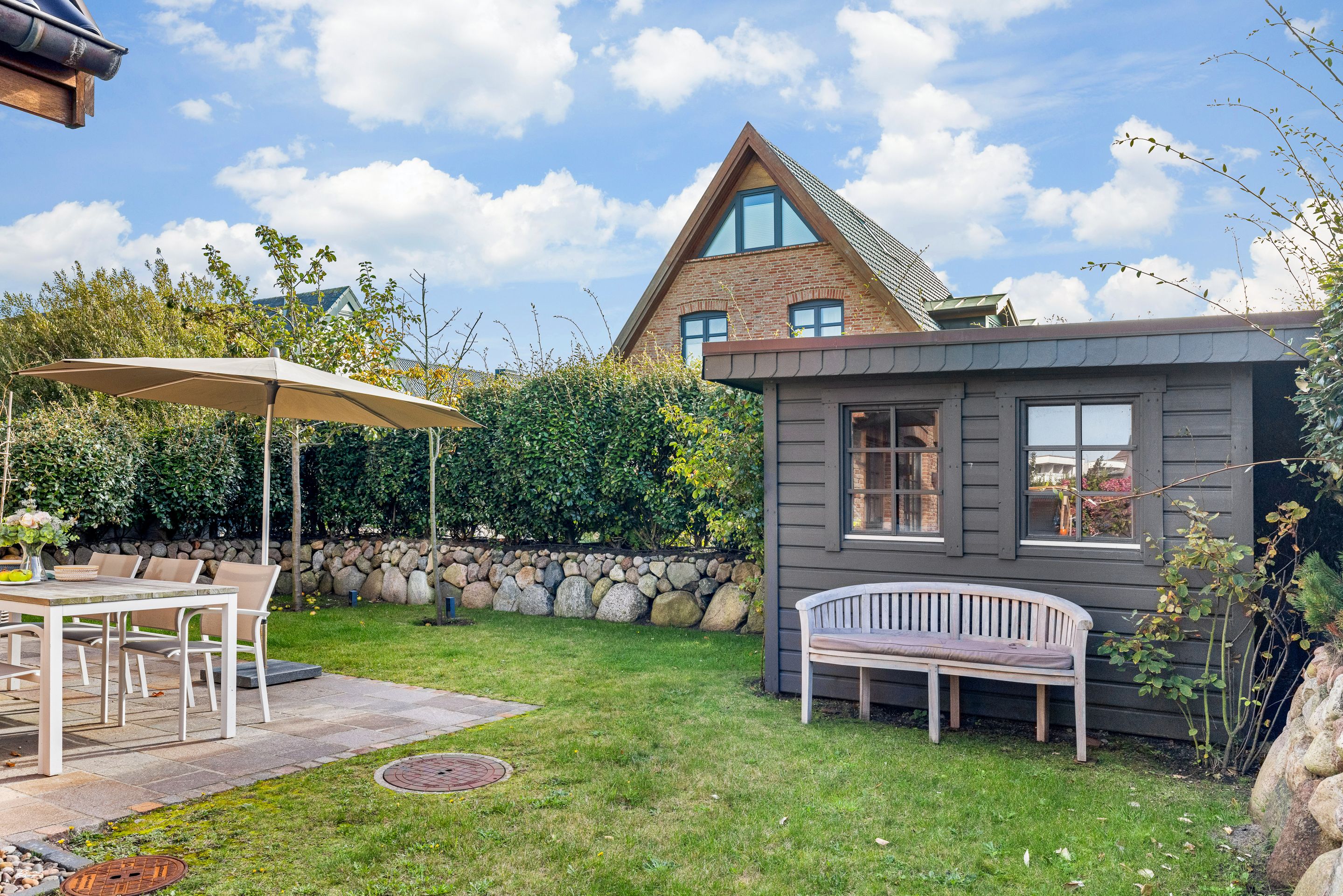 Außenbereich Eingefriedetes Grundstück mit zwei Terrassen, Sitzgarnitur, Sonnenschirm und Sylt-Strandkorb. Abschließbare Fahrradgarage mit Ladestation für Ihr E-Bike. Es steht Ihnen eine Wallbox 11kW gegen Gebühr zur Verfügung. Ein kostenfreier Parkplatz direkt am Haus.
